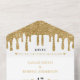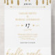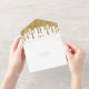 White and gold glitter drip all in one wedding invitation. Personalise it with your event details.