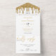 White & Gold Glitter Drip Wedding All In One Invitation