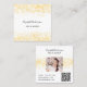 An elegant white background. Decorated with golden, yellow coloured faux glitter dust Personalise and add your name, title, profile photo, phone number, mail, website adsress, qr code to your website or social media account.