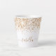 A stylish white background, decorated with faux gold glitter dust. Personalise and add your name written with a trendy hand lettered style script with swashes.
