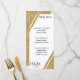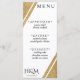White and gold glitter wedding reception menu card with corner stripe. Elegant typography for an expensive look at an affordable price. Customise the meal list and personal details. Great for a modern minimalist wedding theme with a touch of style.