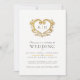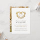 Gold heart wreath monogram wedding photo invitation. Personalise your own monogram initials, wedding details and photo on the back. The wedding invite is in brown, gold, and crisp white. Other colours and matching items are available. Ideal for a late summer, fall or winter wedding. © Graphic heart wreath old gold styled art and design by Sarah Trett for www.mylittleedenweddings.com on Zazzle.