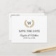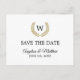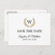 White Gold Laurel Monogram SAVE THE DATE Wedding Announcement Postcard