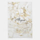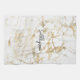 White & Gold Marble, Black Script Name or Monogram Tea Towel