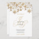 An elegant trendy gold monogram initials stylish romantic white and gold glitter winter snowflakes wedding invitations. Winter wonderland scene with gold snow, and twinkle snowflakes. Elegant the bride and groom's initials. Perfect for any winter-themed wedding party. All designs are printed.
