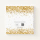 A stylish white background with dark gold confetti. Personalise and add a name, title. The name is written with a modern hand lettered style scipt with swashes.