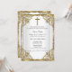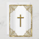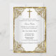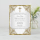 Gold & White Baptism Invitation. Elegant pearl damask frame & gold cross. Customise with your own details. Please note all flat images! they do not have real jewels!