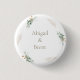 White & Gold Personalised Foliage Wedding 3 Cm Round Badge