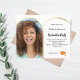 Add your own vertical size photo of the graduate. A faux gold arch shaped photo frame. A chic white background colour. Personalise and add a name and party details.