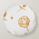White & Gold Plate Rose Floral Pattern Round Cushion