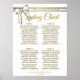 Make your wedding reception beautiful with this seating chart. Designed as a part of our White & Gold Ribbon Wedding Suite, they feature a simple yet elegant design with gold text on a white background with a White & Gold Ribbon & Bow at the top. This chart shows table assignments so your guests will have an easy time finding the right table.