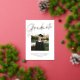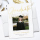 This chic graduation announcement features a classic white background (customisable), elegant typography, and one square photo. The beautiful calligraphy script "Graduate" and your student's name are both in raised gold foil! School attended and future school is flat printed in grey. This is a chic and elegant design. You can customise this design even further by adding another photo or additional text to the backer. Foil is available in gold, silver, or rose gold and absolutely shines! Select real foil graduation announcements to add the wow factor!