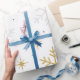 Wrap your gifts in winter magic with this White & Gold Snowflake Sparkle design! Featuring delicate white snowflakes and shimmering golden stars on a deep black background, this elegant pattern captures the timeless beauty of the holiday season.