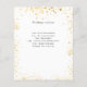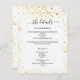 A modern, elegant wedding details/program/timeline. A white background decorated with faux gold glitter, sparkles. Personalise and add your names and wedding details. Black coloured letters.