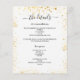 A modern, elegant wedding details/program/timeline. A white background decorated with faux gold glitter, sparkles. Personalise and add your names and wedding details. Black coloured letters.
