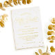 Invite your friends and relatives to celebrate your golden fifty years of marriage with this elegant white and gold 50th wedding anniversary dinner invitation with gorgeous fonts, a warm off-white background, and gold foil stars and flares for a touch of glamour.