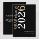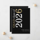 White Gold Text 2025 Black Graduation Announcement. A modern stylish typographical design to announce the news of your graduate, with stylish large typography rotated and to the left hand side at the top in white and gold on a classic black background. Easily personalise the rest of the text. including your message on the back