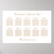 An elegant seating chart poster featuring stylish text in a golden shade of beige on traditional classic white. Please personalise the names of the couple and the names of the guests along with any of the other text that you may wish to personalise.