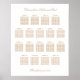 An elegant seating chart poster featuring stylish text in a golden shade of beige on traditional classic white. Please personalise the names of the couple and the names of the guests along with any of the other text that you may wish to personalise.