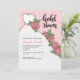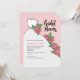 A bridal shower invitation featuring a full-skirt, white gown with pink cabbage roses as accents. (<a href='http://www.freepik.com/free-vector/hand-drawn-bachelorette-invitation-with-wedding-dress-and-flowers_1069816.htm'>Designed by Freepik</a>). <br/><br/>The card is easy to customise with your wording, font, font colour, paper shape options and choice of six paper types.<br/><br/>Not exactly what you're looking for? All our products can be custom designed to meet your needs at no extra charge.<br/><br/>Simply contact us at heartfelthelper@gmail.com<br/><br/>Coordinating products available: Just ask us!