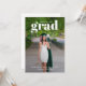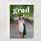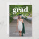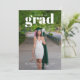 Modern graduation announcement card featuring your photo with an overlay text that says "grad" in white bold letters. You can add a second photo on the back with a message or party information.