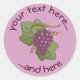 Red grapes with leaves. Custom background colour. Two custom text fields on circle.