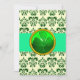 WHITE GREEN DAMASK WITH SHAMROCK Silver Invitation