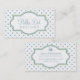 a pretty white with a light green border and with light blue polka dot design business cards ... edit with your business information and then select the type of paper you would like for us to print them on ... Images on this site are NOT public domain. You may not copy, duplicate, alter or scan these designs, images, illustrations, photography, art and writing. You may NOT use them to decorate your website with or create additional products for your business.