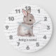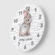 White Grey Bunny Heart Nursery Decor Wall Clock