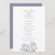 Double-sided chrysanthemum white flower on a white background and one side on a blue grey background wedding program. Floral outline botanical drawing wedding stationary set. Edit this wedding program with your own name, dates, ceremony wording, wedding party attendants and thanks. Simple yet elegant program simply replace sample text with your wedding information details. Modern grey white fall floral wedding ceremony program. Outline drawing and design by Sarah Trett for www.mylittleeden.com and www.mylittleedenweddings.com