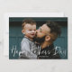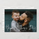 Modern father's day card featuring your horizontal photo on the front with "Happy Father's Day" in a white, handwritten script. Personalise the front by adding your name(s). The back of the card displays a hand-drawn stripe pattern with space for additional photos and text.