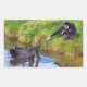 White-handed gibbon or white-handed gibbon (Hylobates lar) and black swan (Cygnus atratus) on water