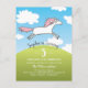 Customise this lovely, bright, colourful and whimsical, stylish 5th Birthday Party Invitation Postcard, designed with a unique hand drawn illustration of a happy, free white horse with a pink mane, jumping in the blue sky with lovely white clouds. Perfect for a girl. This invitation is suitable for any other age Birthday as the number is customisable.