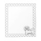 Destei's original cartoon illustration of a cute white coat color Bichon Havanais / Havanese breed dog. The edges on the background have a pattern of gray dog paw prints while the middle is white.