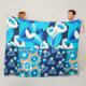 WHITE HAWAII BLUE FLOWERS BOLD FLORAL PATCHWORK FLEECE BLANKET