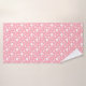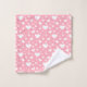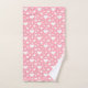 Destei's simple pattern of white colour hearts in different sizes on a pink background colour.