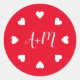 A simple, romantic and cute wedding themed design... eight white hearts of love in a circle with couple initials centralized... red background color
