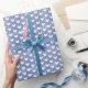 White Hearts on Dark Blue Linen Wrapping Paper