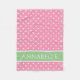 White Hearts on Pink With Green Personalised Fleece Blanket