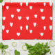 White hearts pattern on red tea towel
