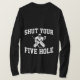 Hockey theme T-shirt for the hockey goalie features a white silhouette hockey goalie with white text that reads Shut Your Five Hole.