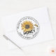 Personalise with your apiary name, product (honey), net weight, and beekeeper name and address. Vintage Sunflower illustration on a white background. Realistic honeybee hovering alongside flower.