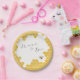 A hand drawn honeybee on a honeycomb plate. Perfect for baby showers with a honeybee, or mama-to-bee theme