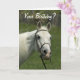Alert enquiry written all over his face, this beautiful white Arabian horse is hoping for a birthday invitation. Against a blurred green grass and grey stone background, his white head and neck, with a little bit of mane, show in a 3/4 pose, so that his lovely dark eyes with their white lashes are looking right into the camera. His dark bridle is another accent against the white, with a little bit of grey and pink on his nose. I'm sure he'll be the life of any party, birthday or not. Copyright Gail Storrs 2009.