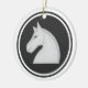 White Horse Knight Chess Ornament. A chess game piece piece symbol round ornament, buy all chess pieces ornaments (16 pieces of each colour, 32 in total: one king, one queen, two rooks, two knights, two bishops, and eight pawns) to collect all chess game pieces!