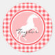 Cool white horse silhouette with name on gingham; red, pink, and white country chequered pattern.
