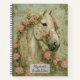 A romantic vintage-style illustration of a white horse adorned with soft pink roses and delicate greenery. The gentle color palette and textured background create a dreamy, shabby chic composition inspired by classic floral and equestrian themes.