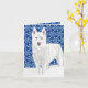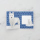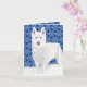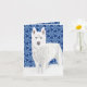 This unusual Christmas card features my painting of a white Husky against a backdrop of light blue snow flakes on a dark blue background. This has been left blank inside for your own message.