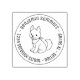 Black and white cartoon illustration of a slightly shaggy white dog with a happy grin, tongue out. A simple kerchief is tied around its neck. Please note, you may need to adjust the information you enter by adding or deleting some characters or spaces, to make the name and the address properly aligned.