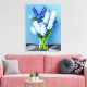 White Hyacinths in a Glass Vase on Blue Canvas Print
